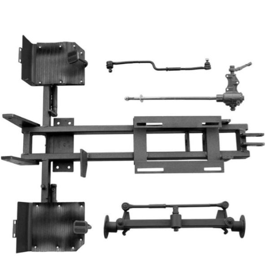 Передній міст посилений, виготовлений з профільної труби перерізом 60 × 40 × 4 мм. Ширина між ступицями становить 770 мм, ширина задньої колії регульована (650-730 мм). Ступиці переднього моста виготовлені під жигулівське колесо, разболтовка 4 × 98 мм. Також можливе використання «докаток». Передні колеса в комплект не входять (при необхідності можна замовити окремо). Товщина ступиці 6 мм.
